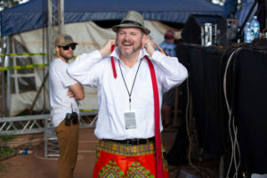 Andrew Ward prepares for a 2017 iKnow Concert, part of a series of festivals in Uganda that attracts music lovers and provides complimentary health services, especially HIV testing. Joel Woodman photo