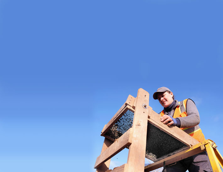 On a January morning, Kerri Barile ’94 crunched through the remnants of snowfall along downtown Fredericksburg’s riverfront to survey two carefully covered sections of upturned earth. As team members from Dovetail Cultural Resource Group bailed water from tarps, Barile consulted with archaeology division manager Brad Hatch ’07 about plans to inspect the foundations of an icehouse and an antebellum residence below the grassy surface.
