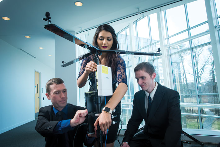 A new pathway program will allow UMW seniors to enroll in engineering classes at George Mason University. Here, GMU students show an active-shooter detection system they designed. (Evan Cantwell/GMU)